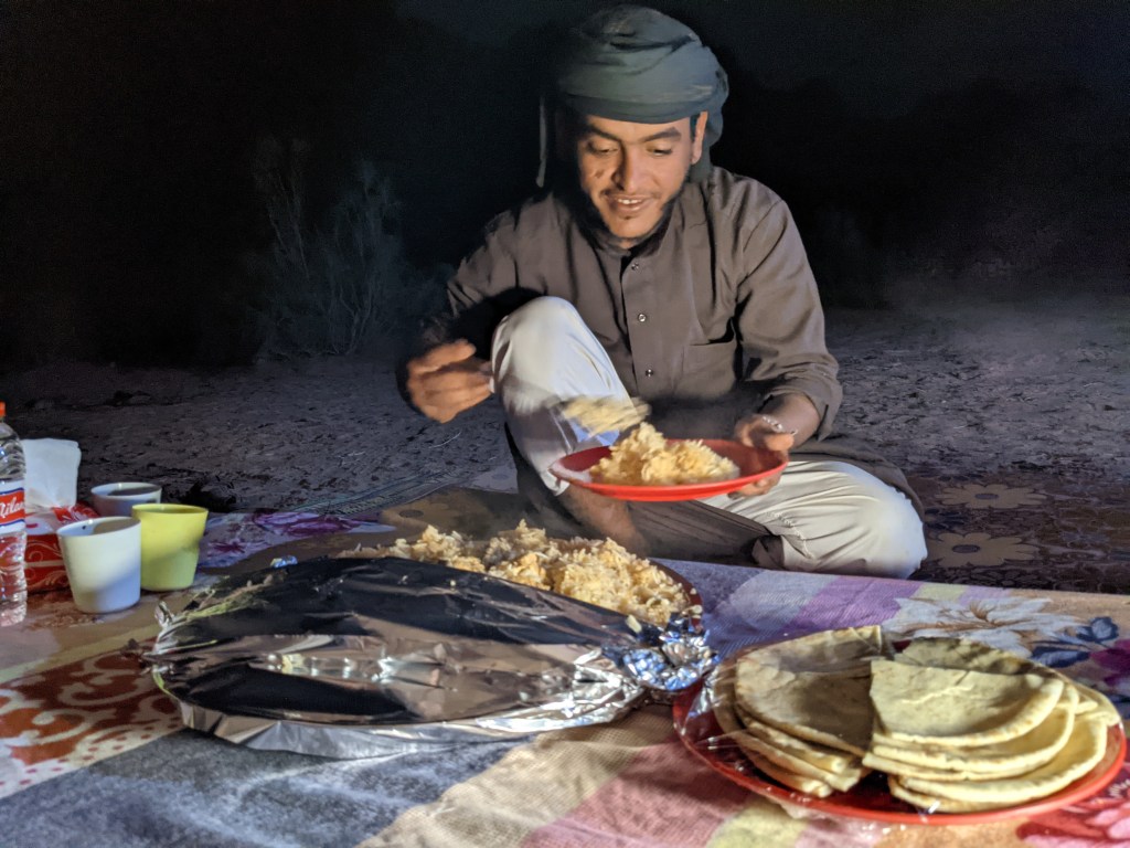 Arriving at the meetup point for lunch or dinner, we were consistently met with a cup of steaming Bedouin tea. In Ali’s words; ‘There is always more tea, the whisky of the bedouin!’.